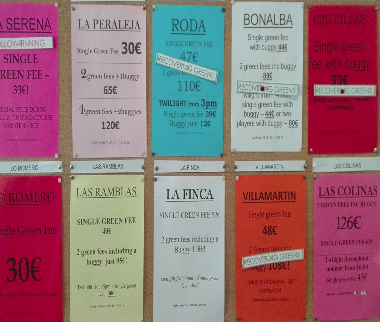 Début septembre 2016, une semaine à 50km en dessous d'Alicante, à Orihuela, Marcel a visité plus de 24 golfs sur 50km.